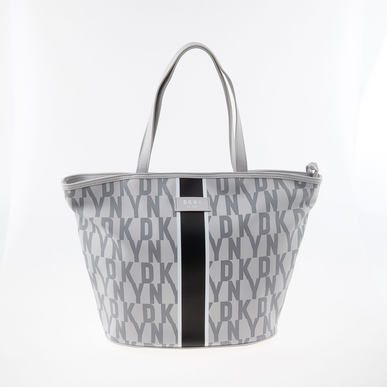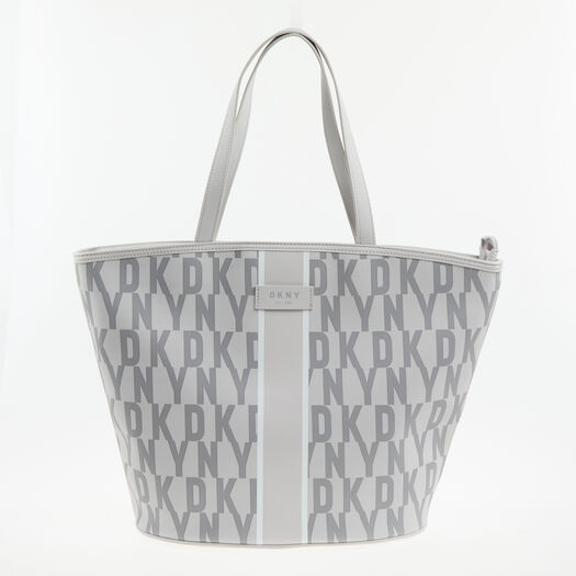 DKNY Grey Signature Stripe Tote Bag with logo pattern